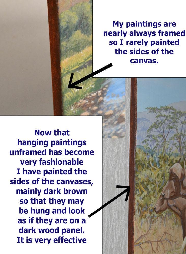 The painting, oil on stretched canvas, comes with the sides painted so that the work may be hung as is or framed as the buyer prefers.